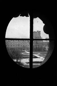 On peut imaginer que, de la fenêtre de son bureau, Louvois, ministre de Louis XIV se plait à surveiller la cour du Palais.