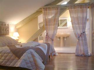 Chambre dans les combles aménagés avec salle de bain dans la chambre.