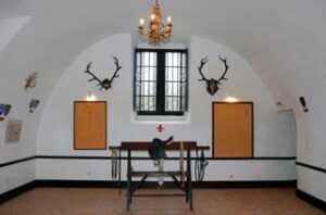 Tapisserie d'Aubusson, portraits, plafond vouté en bois et pierres.