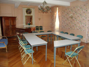 Location exclusive de l'ensemble des 3 salles, salle de la Grange, grande cheminée, pour déjeuner ou diner, salles Monet et Bergerie pour cocktail.