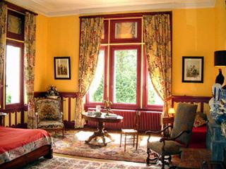 Chambre située au premier étage avec un grand lit double ainsi qu'un lit simple, et salle de bains (baignoire, wc).